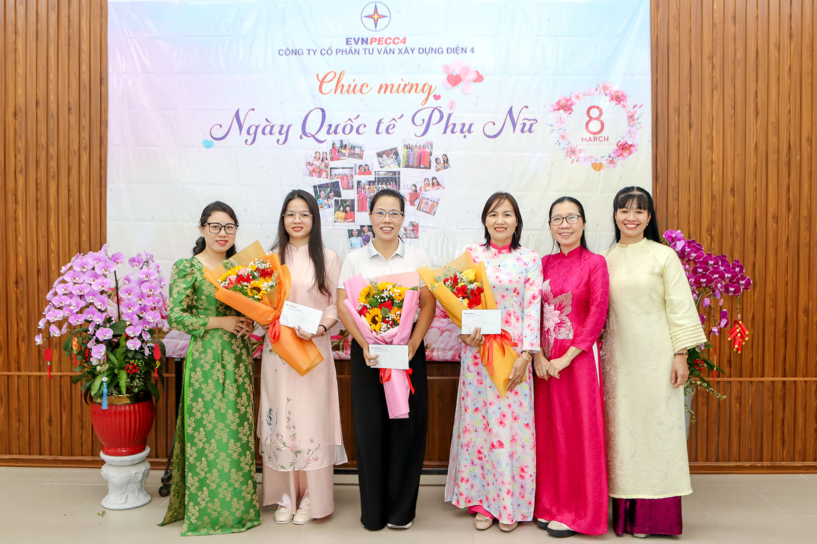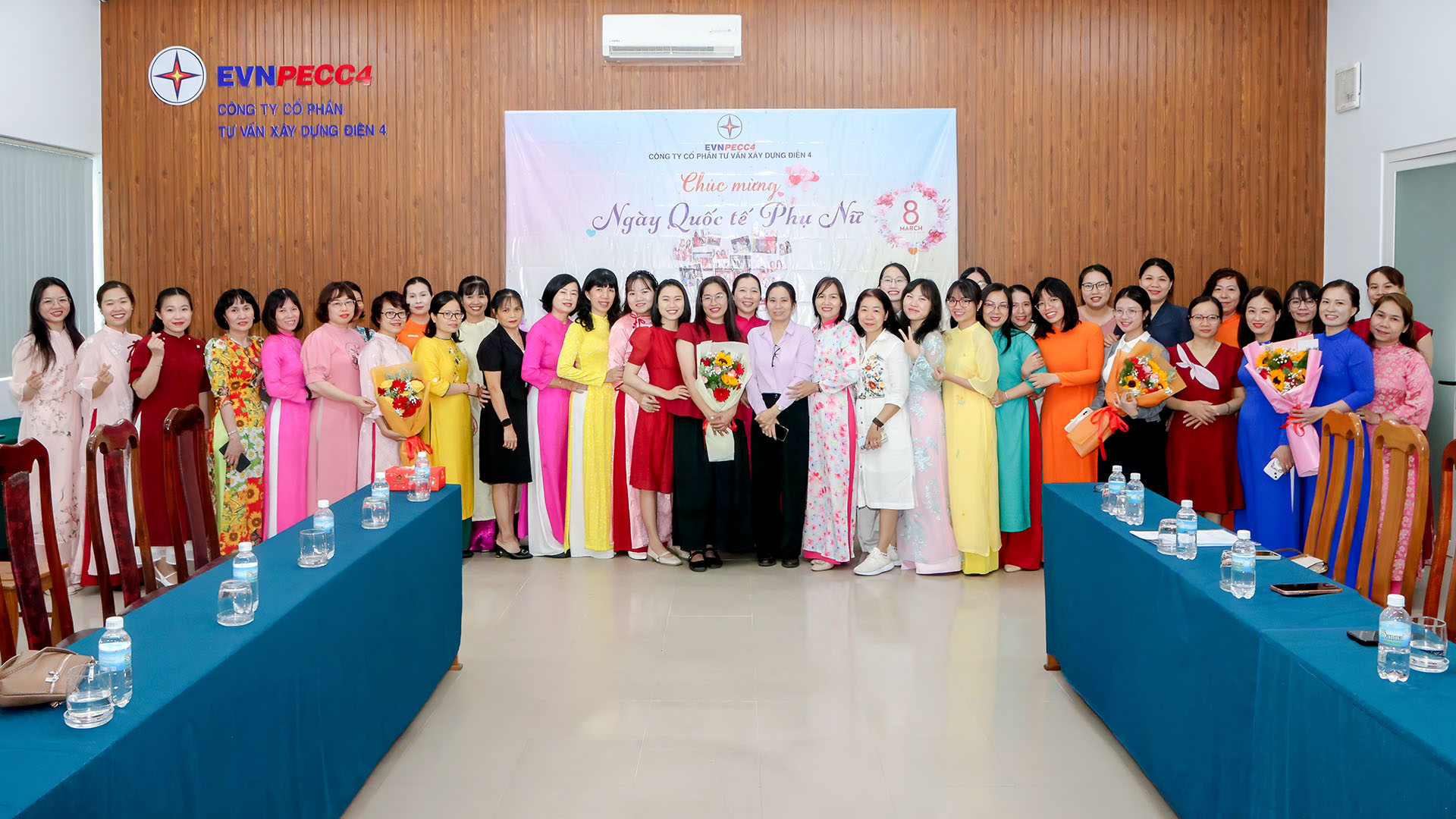 Nhân kỷ niệm Ngày Quốc tế Phụ nữ 8/3, thay mặt Ban Lãnh đạo Công ty và Ban Chấp hành Công đoàn Công ty, Ông Nguyễn Như Đông - Phó Tổng Giám đốc, Chủ tịch Công đoàn, Trưởng ban Vì sự tiến bộ Phụ nữ EVNPECC4 gửi lời chúc mừng và ghi nhận những đóng góp tích cực của nữ CNVC-LĐ trong các hoạt động sản xuất kinh doanh, phong trào thi đua của Công ty. Nhân dịp này, Ông Nguyễn Như Đông đã tặng hoa chúc mừng và chụp ảnh lưu niệm cùng tập thể nữ CNVC-LĐ EVNPECC4.