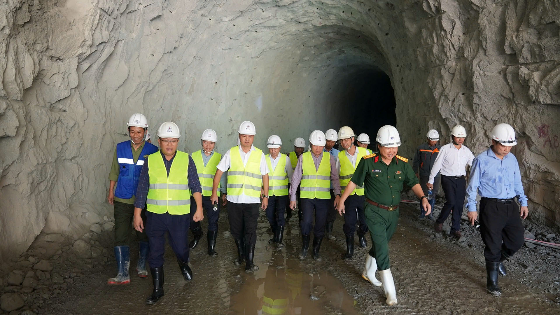 Phó Tổng giám đốc Phạm Hồng Phương (bìa trái, hàng đầu) kiểm tra hạng mục thi công các hầm của dự án