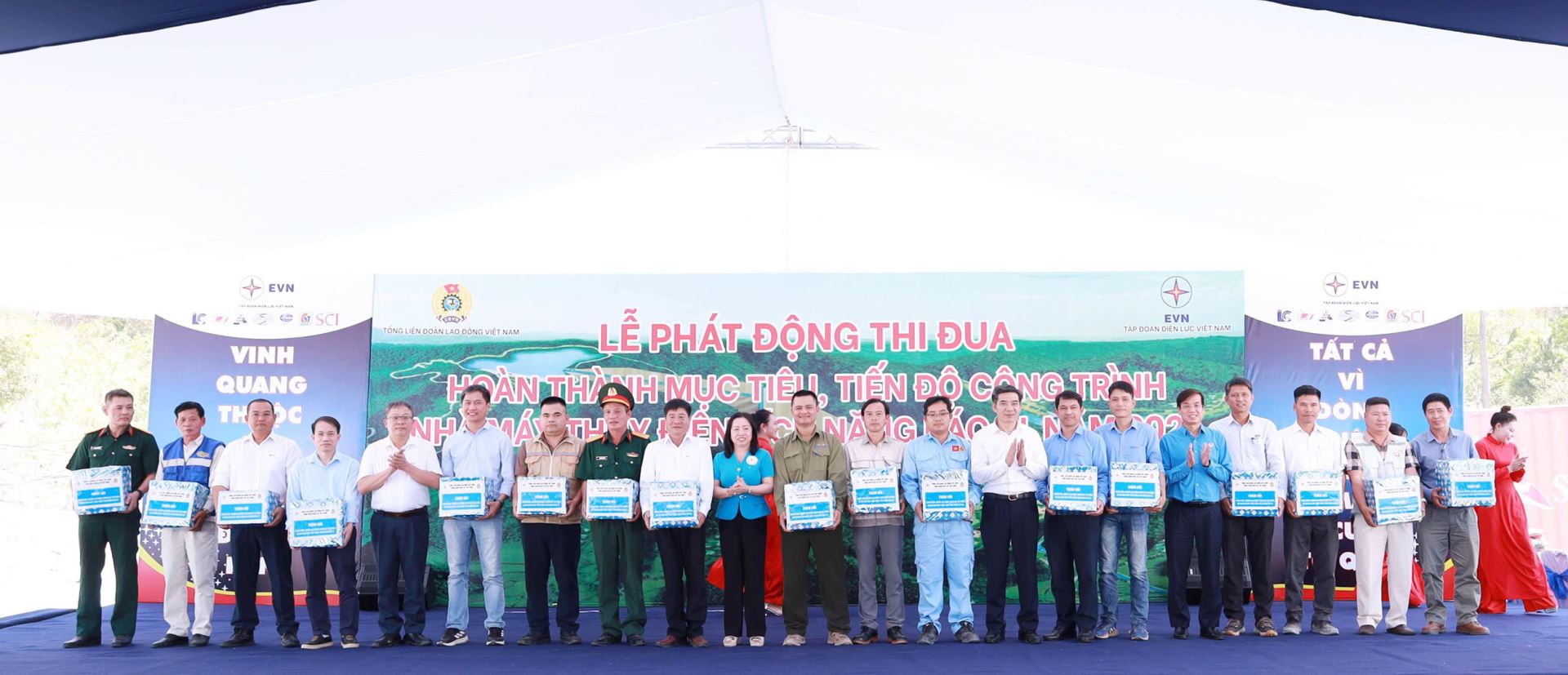 Tại buổi lễ, Tập đoàn Điện lực Việt Nam và Công đoàn Điện lực Việt Nam đã có những phần quà động viên, thăm hỏi người lao động các đơn vị tham gia ký cam kết giao ước thi đua.
