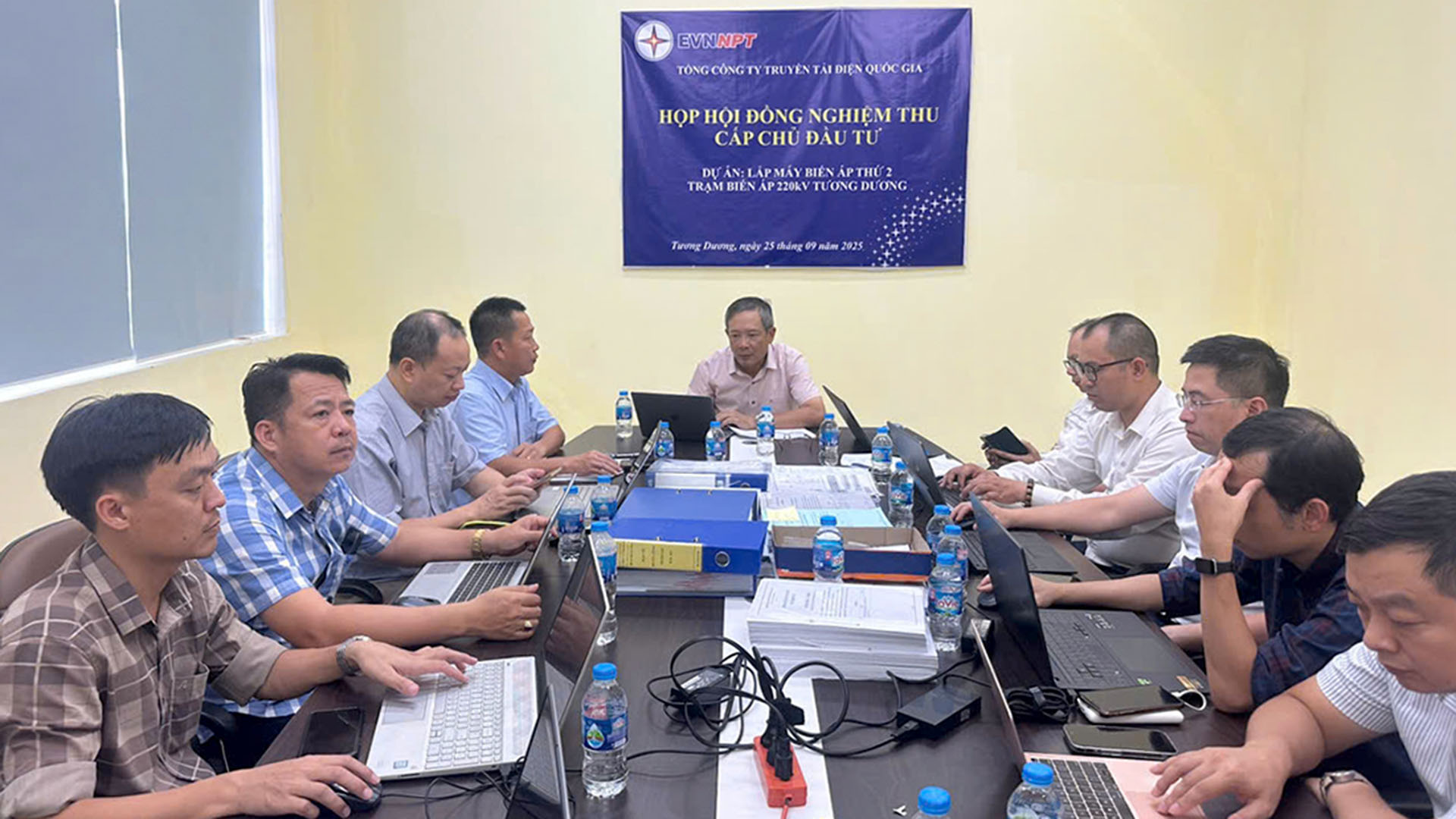 Trước đó, Hội đồng nghiệm thu cấp chủ đầu tư do Phó Tổng giám đốc EVNNPT Nguyễn Ngọc Tân chủ trì họp và Hội đồng thống nhất đóng điện dự án